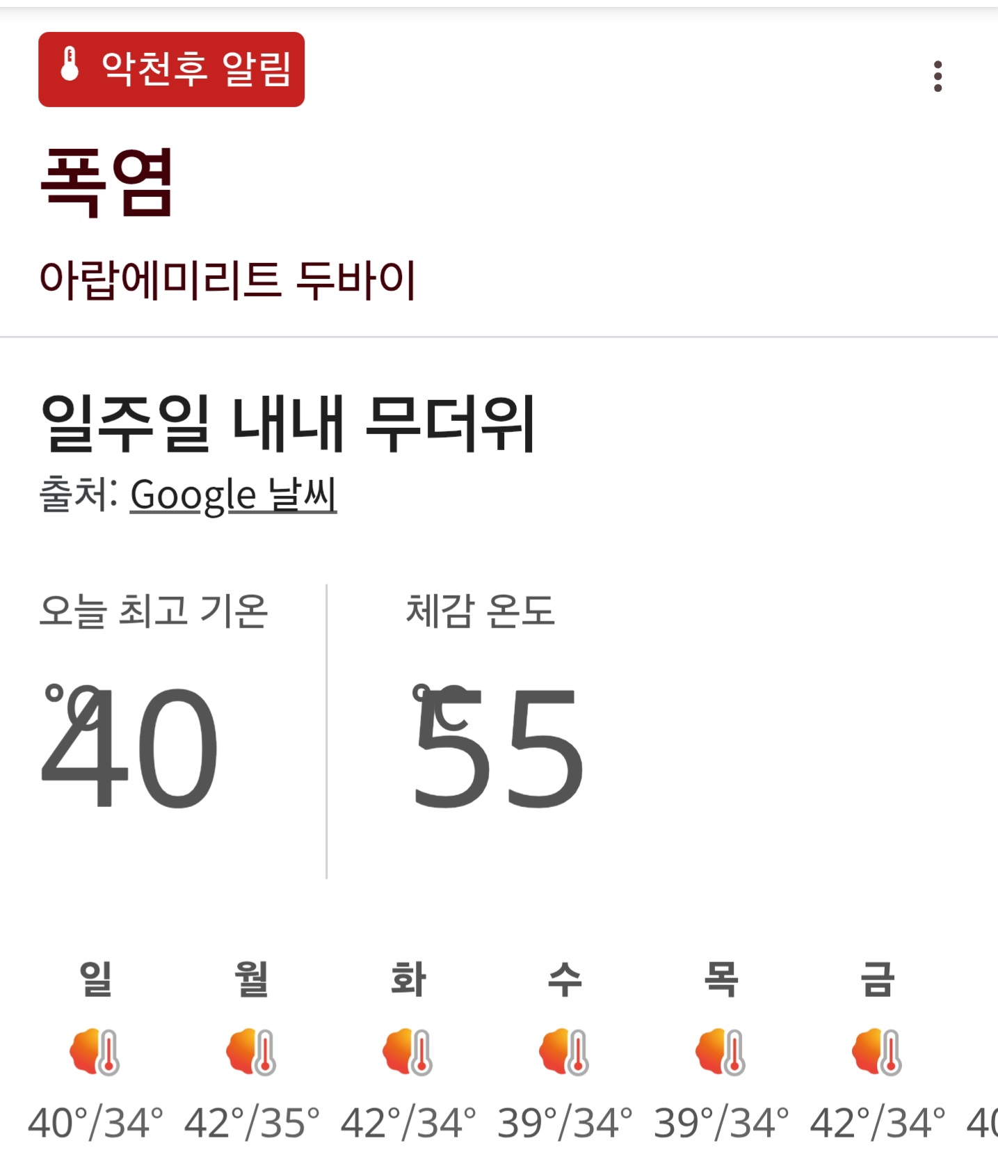 A.극심한 폭염 지역(40℃ 이상 가능)